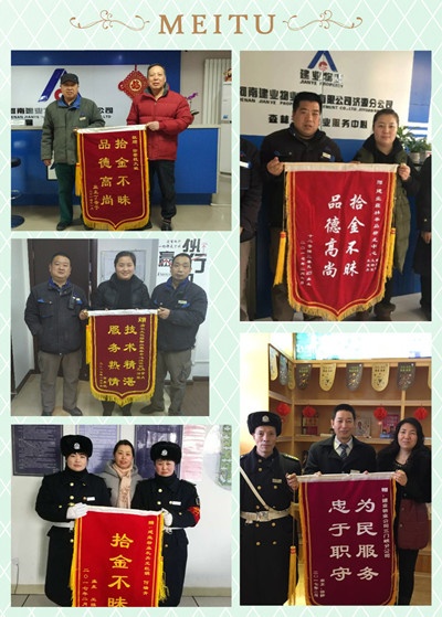 濟源·建業(yè)森林半島某業(yè)主家親戚來訪,歡聚一堂,下午在親戚準備離去時發(fā)現自己的隨身紅包(內有約2000元現金)不見了,著急的樓上樓下來回跑,此情此景恰好被綠化工朱建齊看見,他主動上前詢問又現場幫忙尋找,且致電辦公室救援,值班人員王擁軍、陳文忠收到信息后,立即開始查找監(jiān)控,連續(xù)翻閱視頻13個小時終于找到了,此時已是深夜11時。次日急忙撥通了失主的電話通知其前來領取,業(yè)主親戚對建業(yè)物業(yè)認真負責的態(tài)度連聲夸贊,并送錦旗一面。