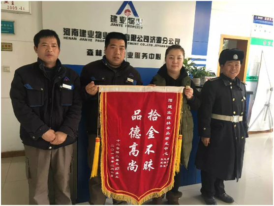 濟源·建業(yè)森林半島某業(yè)主家親戚來訪,歡聚一堂,下午在親戚準備離去時發(fā)現自己的隨身紅包(內有約2000元現金)不見了,著急的樓上樓下來回跑,此情此景恰好被綠化工朱建齊看見,他主動上前詢問又現場幫忙尋找,且致電辦公室救援,值班人員王擁軍、陳文忠收到信息后,立即開始查找監(jiān)控,連續(xù)翻閱視頻13個小時終于找到了,此時已是深夜11時。次日急忙撥通了失主的電話通知其前來領取,業(yè)主親戚對建業(yè)物業(yè)認真負責的態(tài)度連聲夸贊,并送錦旗一面。