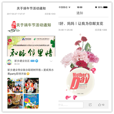 漯河、鄭州、洛陽等分公司將親子運(yùn)動會、鄰里旅行、消夏音樂節(jié)、藝術(shù)團(tuán)義演等活動引入社區(qū),倡導(dǎo)業(yè)主以全新理念暢享新型生活方式,感受鄰里共處的曼妙時(shí)光,體驗(yàn)建業(yè)物業(yè)獨(dú)具特色的社區(qū)文化。新鄉(xiāng)、焦作等分公司充分利用建業(yè)一家APP、微信等載體,實(shí)現(xiàn)線上線下的充分互動,更是贏得了業(yè)主的一致好評,極大的提高了業(yè)主參與度和滿意度。而書法、讀書會、籃球、太極等等社群組織的組建、運(yùn)營和活躍,亦是本階段的重要成果。