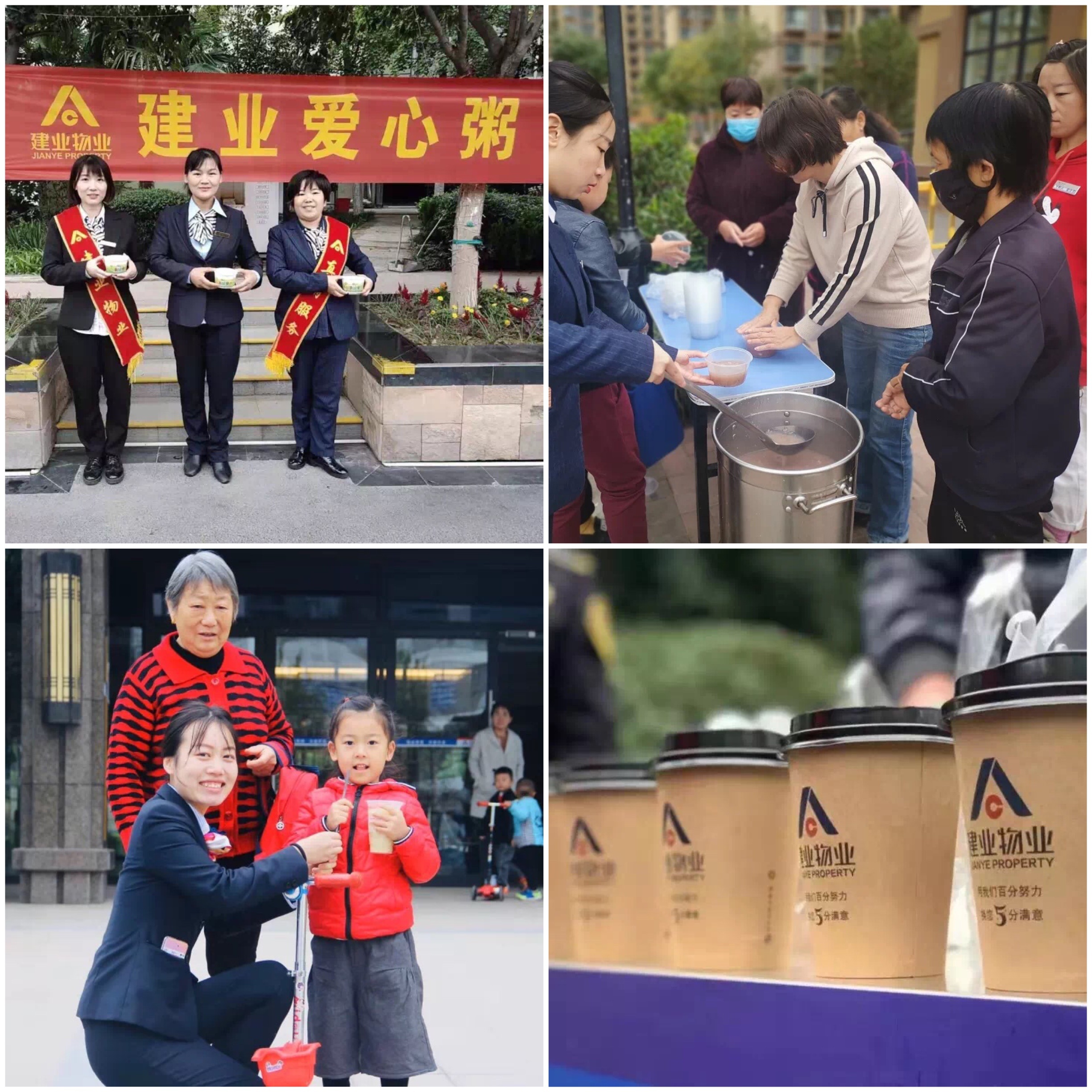 每年,從秋季開始,建業(yè)物業(yè)全省聯(lián)動,各個小區(qū)開展為業(yè)主送暖心茶、養(yǎng)生粥的活動。在建業(yè)物業(yè)社區(qū)門口,物業(yè)工作人員早早地守在晨風(fēng)中,親手為業(yè)主送上一杯暖心茶、養(yǎng)生粥,為業(yè)主送去溫暖。此項活動被廣大業(yè)主津津樂道,他們紛紛稱贊建業(yè)物業(yè)的服務(wù)走胃更走心。